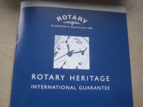 Rotary Ladies Wrist Watch in Original Box sat on a cushion with the original guarantee. It was bought at Austen Jewellers in Chichester in March 2005. It has extra lugs which can be fitted to the watch as well.