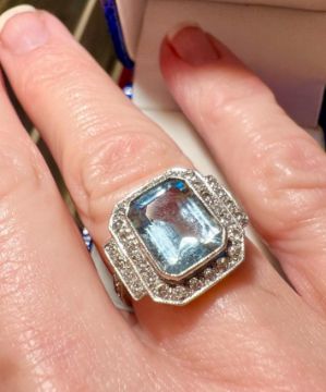 Title: Art Deco Style Aquamarine & Diamond Dress Cocktail Ring 2.30ct + 0.50ct