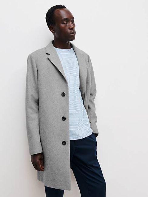 Kin Bonded Wool Blend Epsom Coat, Black.