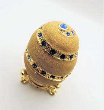 Title: Faberge Style Gold Blue Jewelled Egg Trinket Box & Stand