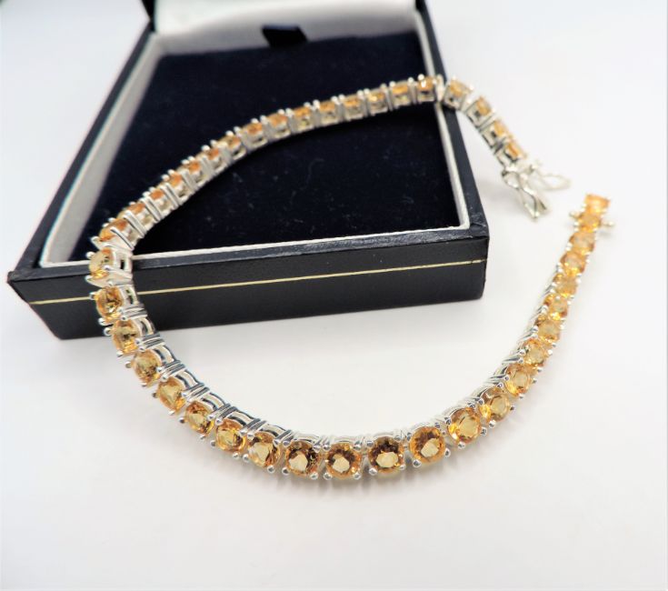 It is 7.75 inches (19.5cm) long/ This citrine tennis bracelet is the perfect accessory for any occasion.