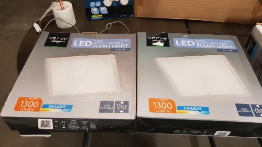 2x Verve Design Aston LED 33cm White Frosted Flush Light.
