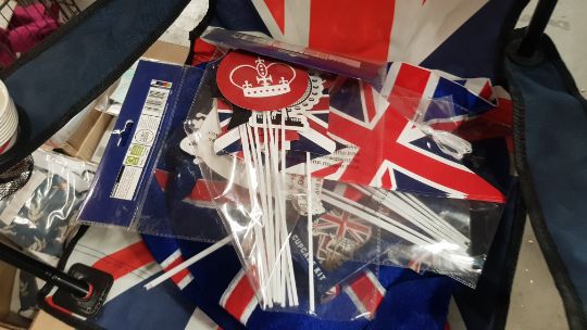 Union Flag Folding Chair, Bunting, Hats, Photo Props And Flag.