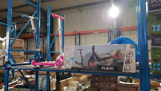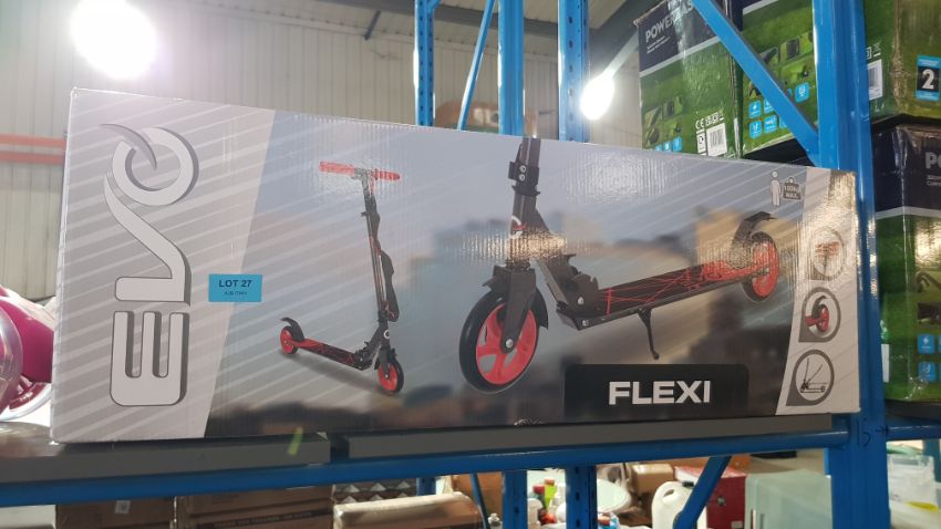 Title: (2B) RRP £145. 3x Evo Items. 2x Flexi Scooter RRP £60 Each. (1x Black/Red Boxed, 1x Blue). 1x Light