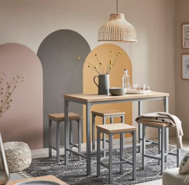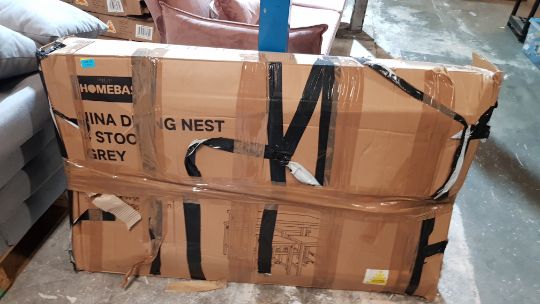 Title: (P). RRP £200. Nina Dining Nest 4 Stools Grey. Table: (L120x W65x H90cm). Stool: (W35x D35x H60cm).