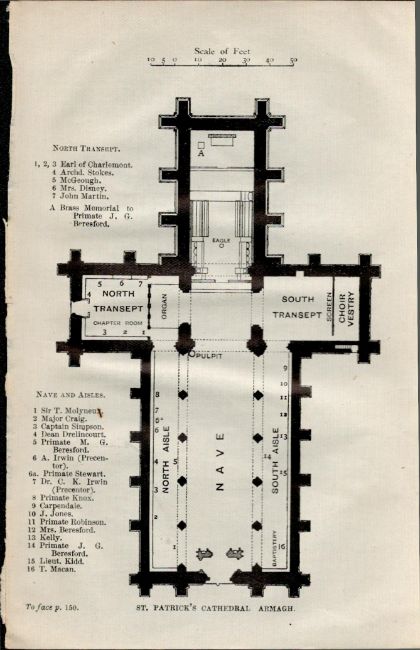 Detailed Plan St Patricks Cathedral Armagh  Antique Map .