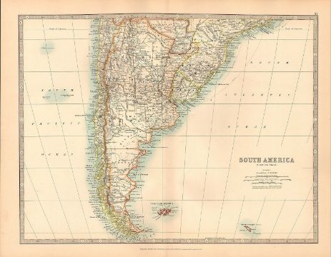 Title: South America South Paraguay Uruguay Falklands Island Etc Large Antique Map.