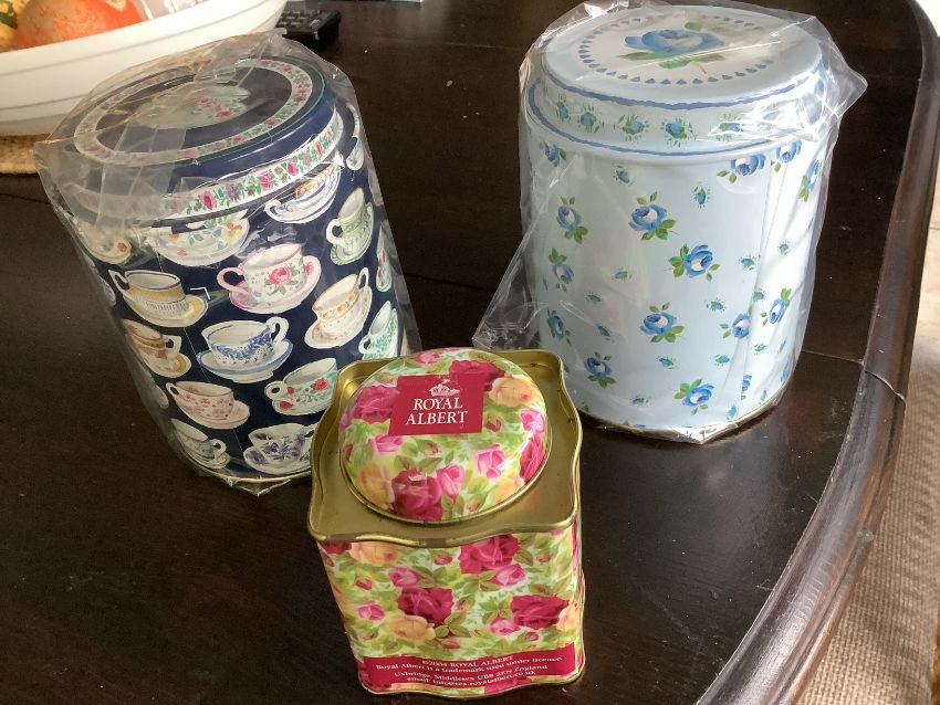 Approx. 200 asst metal tea canisters,  3 asst designs.