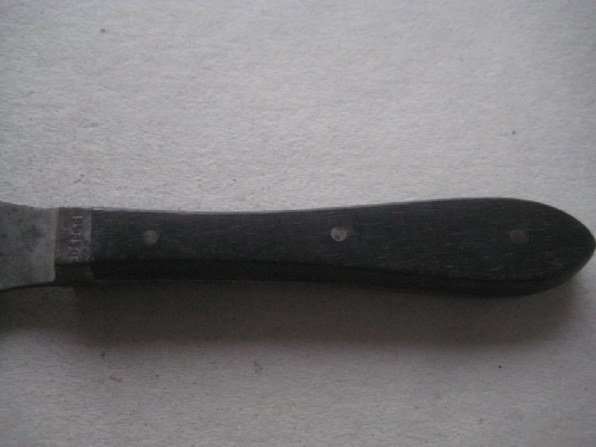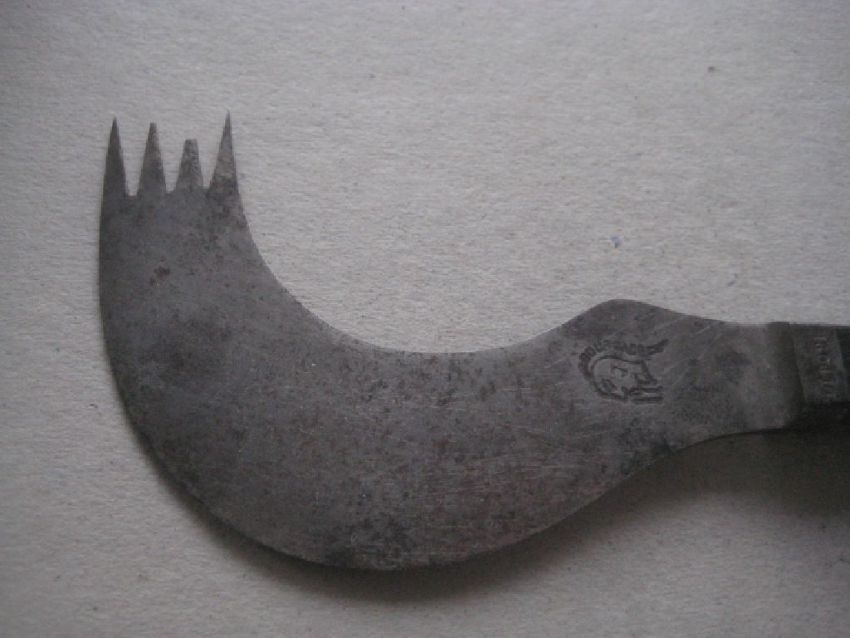 The Combination Knife and Fork was made in Carbon Steel and has a Black Ebony Handle.