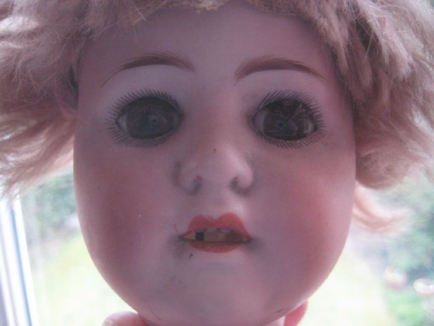 The second porcelain doll has hair and moving eyes, and is 4 Inches in Height.