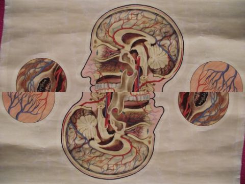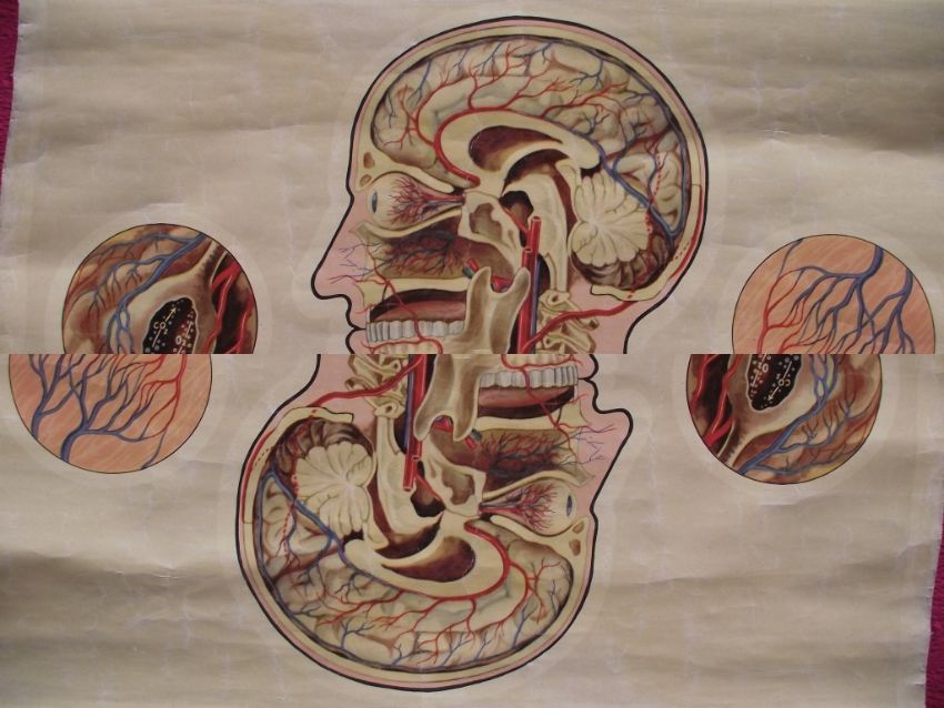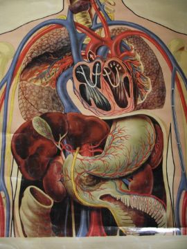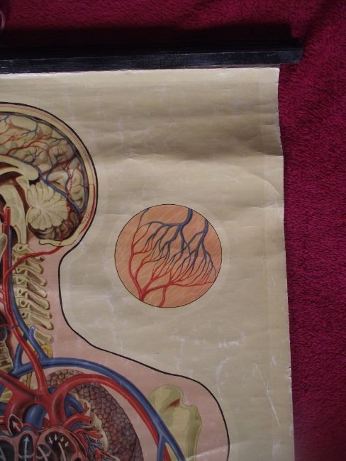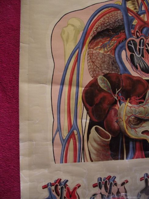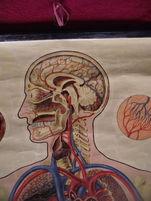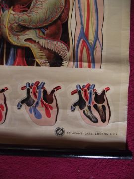 Vintage St John’s anatomical chart, circa 1950, which was designed by the renowned artist J. Teck and shows the circulation of the upper body.