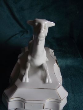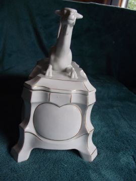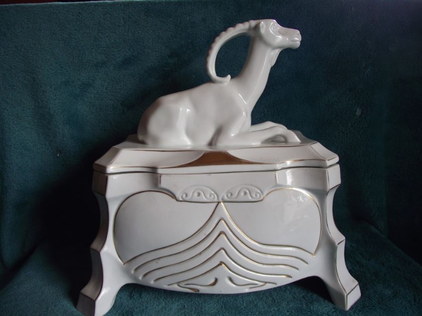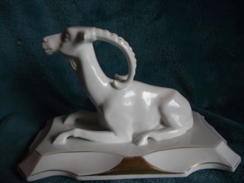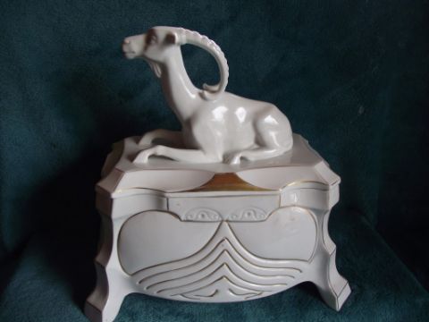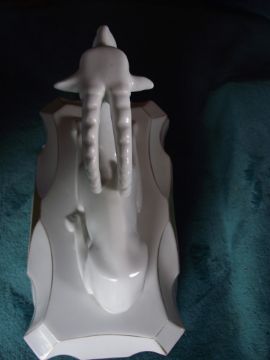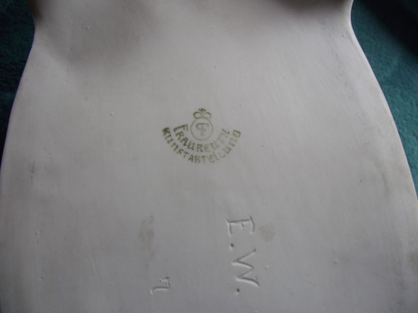 This important factory had a short lived production established in 1885 and dissolved in 1934. Figural pieces are rare and somewhat scarce.