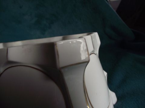 Condition: Good - minor chips which have been glazed over - minor wear to some of the gilt decoration - 2 small firing cracks - 1 to the inner lid and the other to the inner base (see images) - factory stamp to base - the artists initial E.W. and the number 7 is imprinted to the base. - see all images.