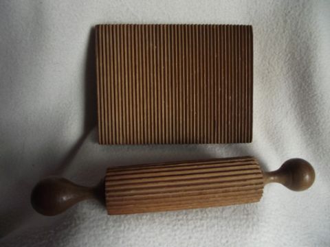 Early19th century roller and original board, used in the home to crimp lace after it had been washed and starched, e.g. cuffs, neck ruffs.