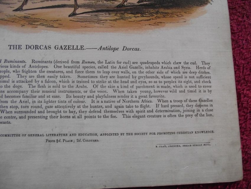 A great addition to any early collection of Natural History prints which have been hand coloured when published "Price 3/4d Plain; 2d Coloured".