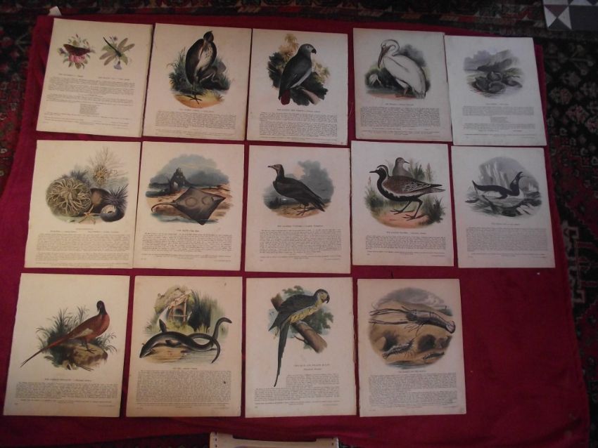 14 X Plates Illustrative of Natural History - Josiah Wood Whymper - Double sided on linen - 1843