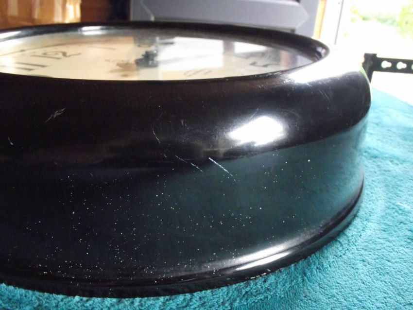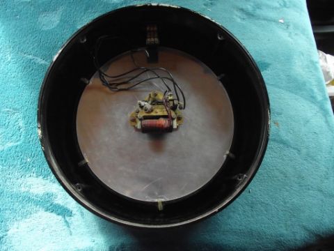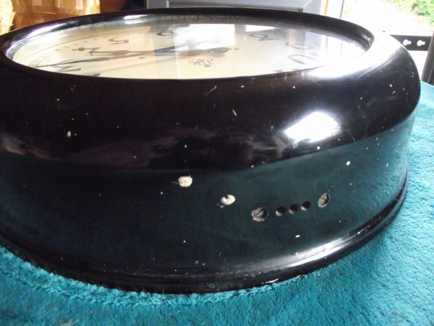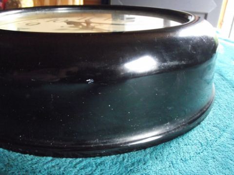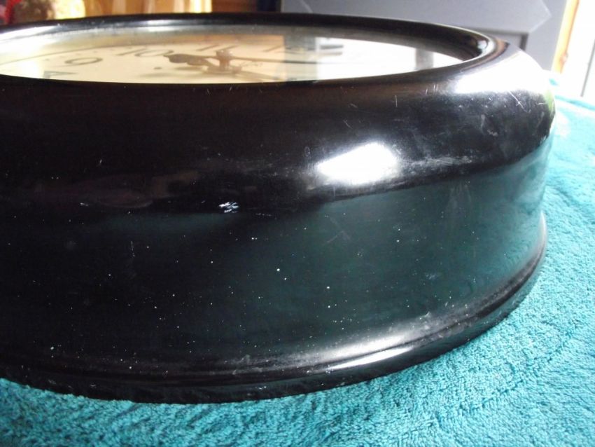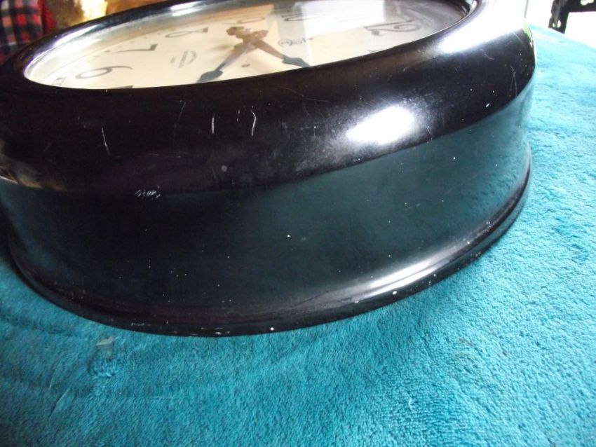 Condition: Heavy bakelite case which is undamaged but has some paint marks and also small paint spots (spatter) all over - original electrics which have not been tested - stamped into the brass holding the electrics is the number NE5721 - replacement glass - attachment to inner case which appears to enable wiring to be attached - the metal dial is in very good condition - the minute hand has slight damage to the end with no loss and has been repainted - see all images for condition.