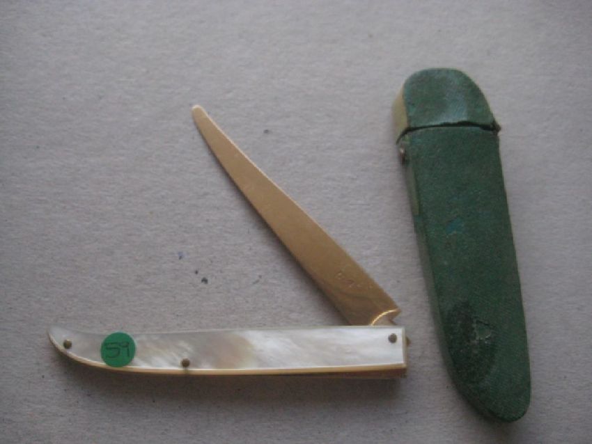 Title: Rare French Gold Bladed Folding Fruit Knife, Cased