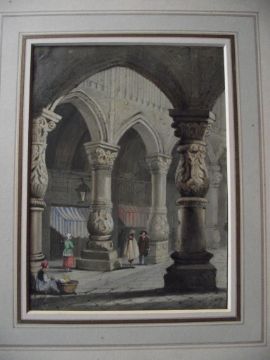 Samuel Prout (1783 – 1852) was a British watercolourist, and one of the masters of watercolour architectural painting. Prout secured the position of Painter in Water-Colours in Ordinary to King George IV in 1829 and afterwards to Queen Victoria. John Ruskin, whose work often emulated Prout's, wrote in 1844, "Sometimes I tire of Turner, but never of Prout". Prout is often compared to his contemporaries: Turner, Constable and Ruskin, whom he taught.