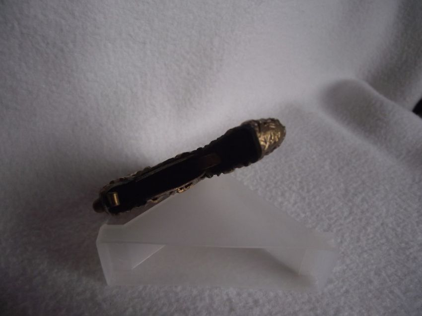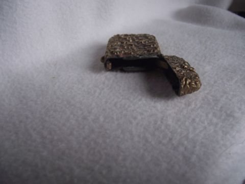 2. Brass embossed vesta case has an all over floral design - the case opens via a push button to one side.