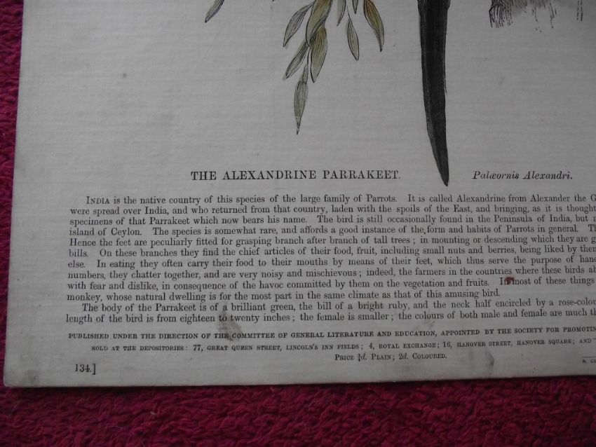 A great addition to any early collection of Natural History prints which have been hand coloured when published "Price 3/4d Plain; 2d Coloured".