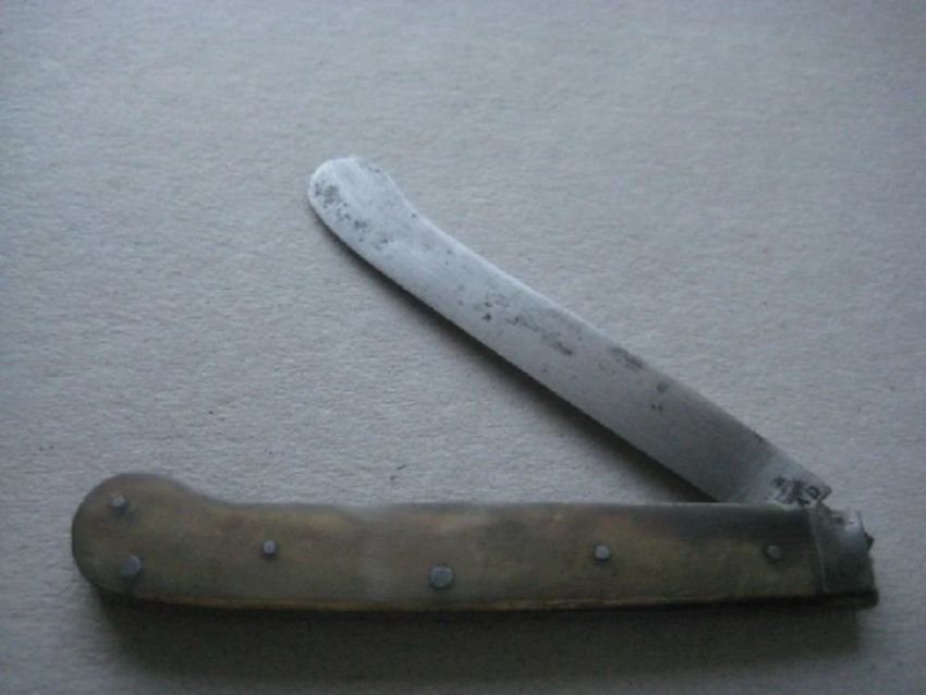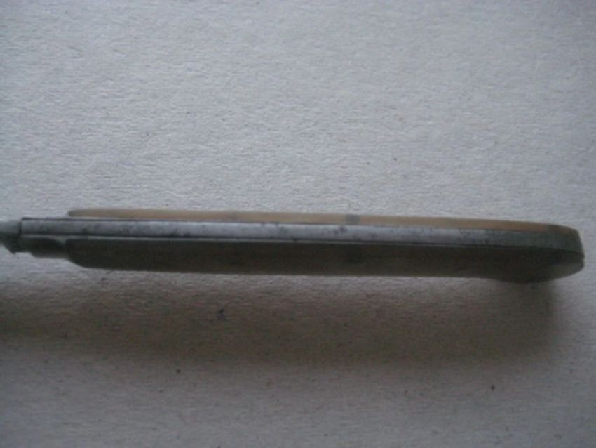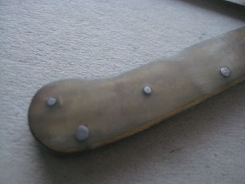 The handle is bone. The Steel Blade is Scimitar Shape.