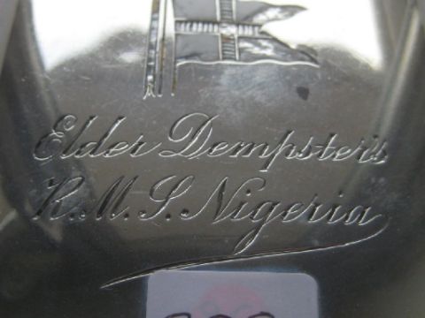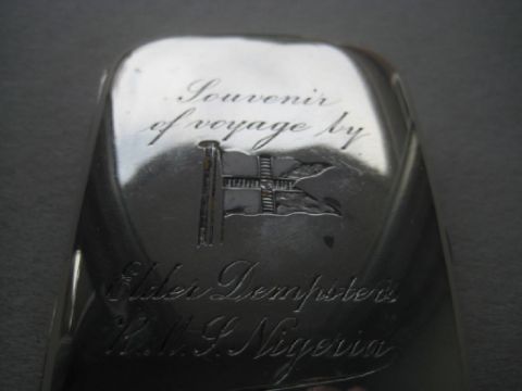 The Cigarette Case is inlaid with a white enamel Flag and is engraved with "Elder Dempster's R.M.J. Nigeria" on it.