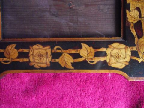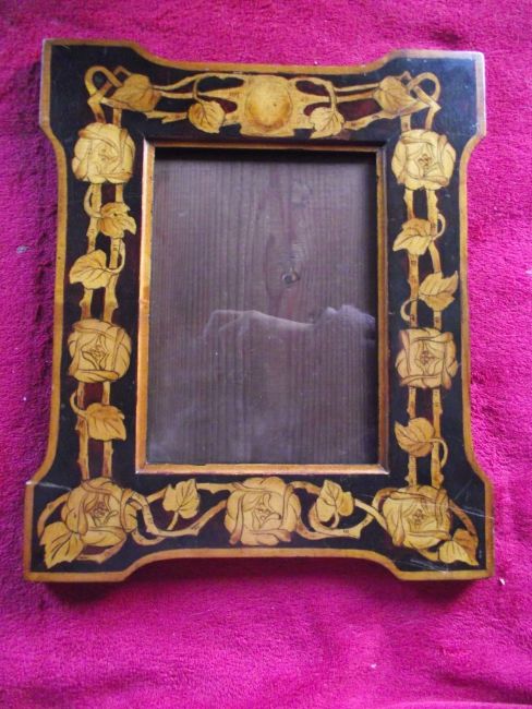 Wooden picture frame - pen and ink decoration in the Arts & Craft style, similar to Charles Rennie Mackintosh.