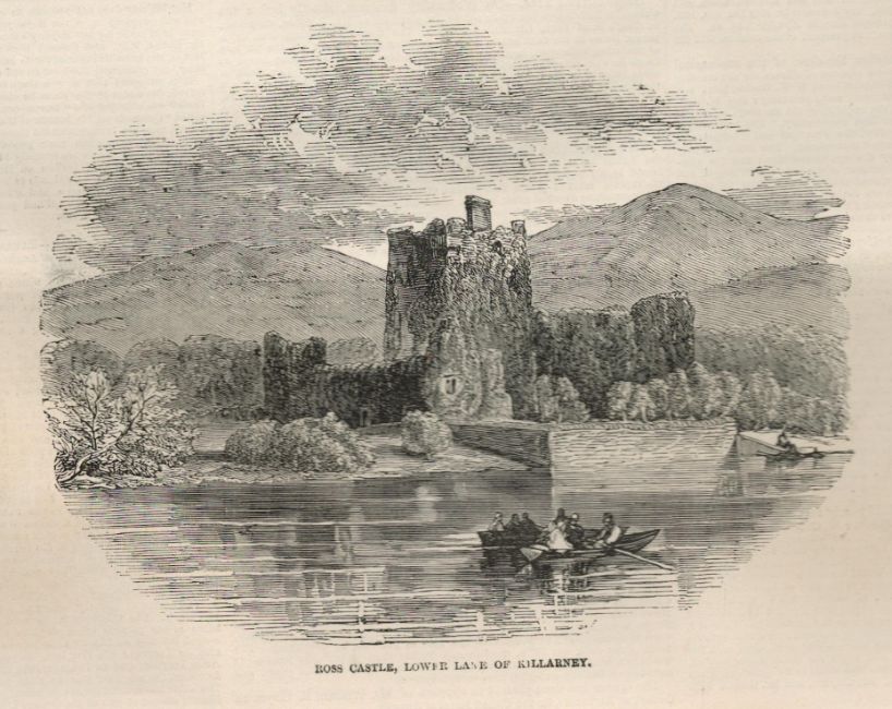 Title: Macgillicuddys Reeks & Ross Castle Killarney Antique 1849 Print