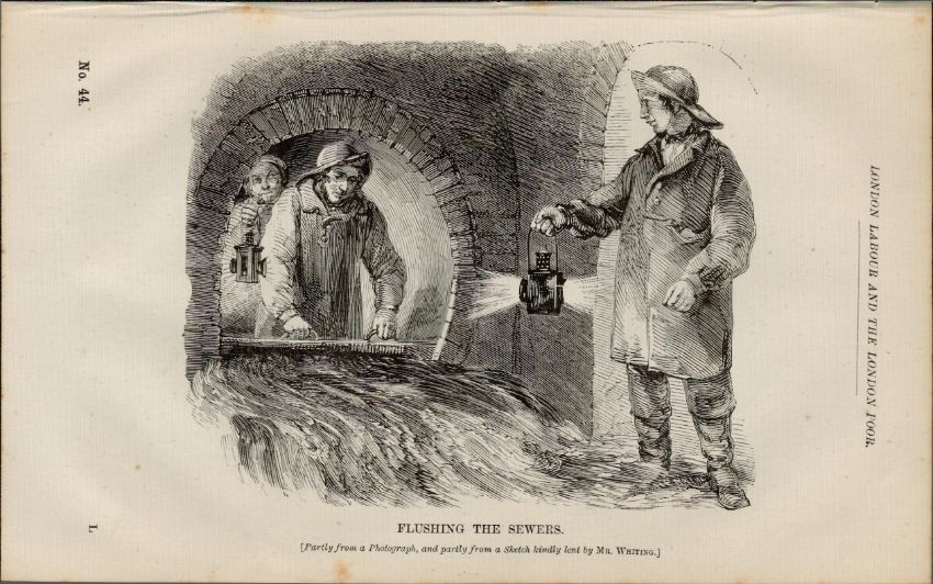 London Flushing The Sewers Antique Rare 1864 Henry Mayhew Print.