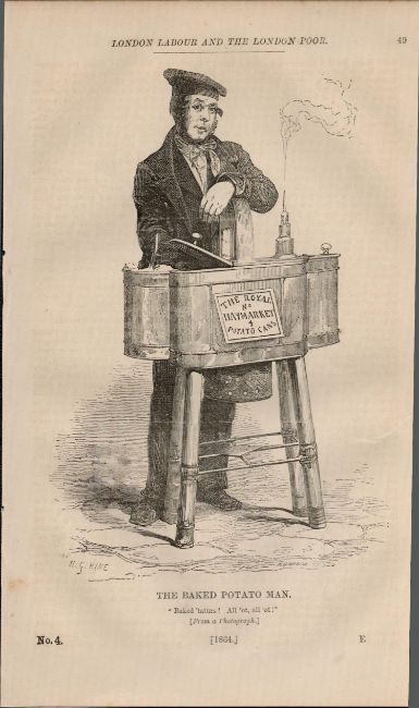 London Baked Potato Man Rare Antique 1864 Henry Mayhew Print.