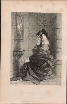 Title: Ireland Lady at Prayers 1837-38 Victorian Antique Engraving.