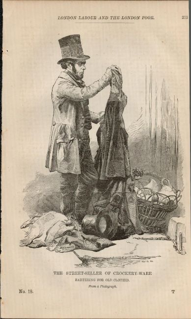 London Crockery Seller Rare Antique 1864 Henry Mayhew Print.