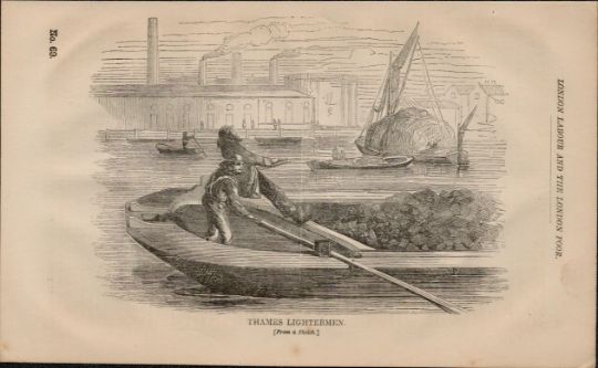 Title: London Victorian Thames Lightermen Antique 1864 Henry Mayhew Print.