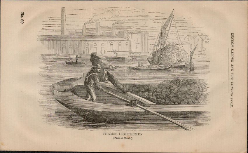 London Thames Lightermen Antique 1864 Henry Mayhew Print.