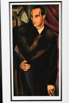 He is every bit the emblem of masculine fashion and by depicting him in the Cubist influenced style of the 'Roaring Twenties' Lempicka decorates her subject with the trappings of wealth which was characteristic of the socialites and aristocrats in her work.
