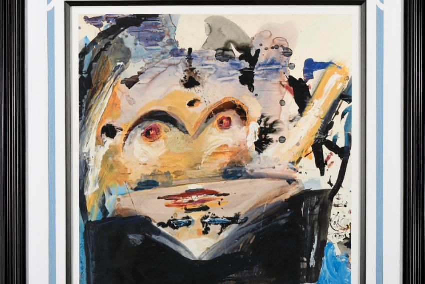 The expressive brushstrokes are a blend of oil paint, gouache, watercolour and ink.