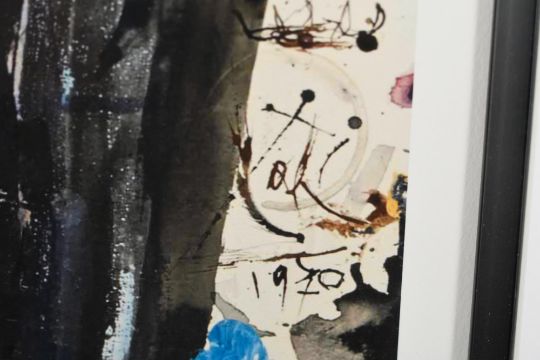 The original painting is a 77 x 73 cms (30 x 29 ins) work on paper, pulling together a range of mediums.