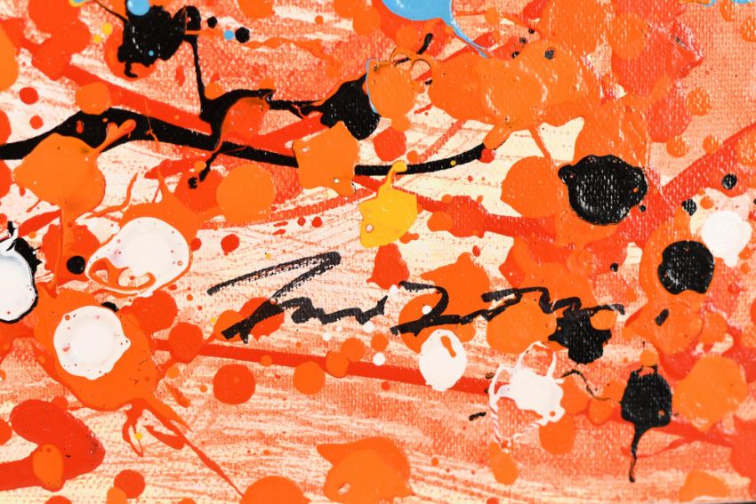 7406 - Very large original Chinese oil on canvas painted in bright colours.