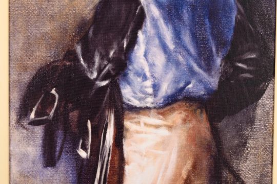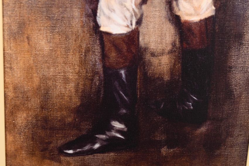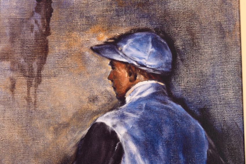 This image depicts a romanticised version of a jockey's preparation before the race.