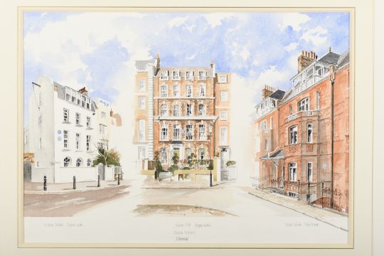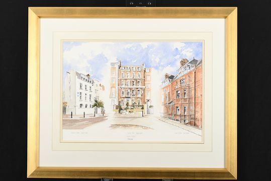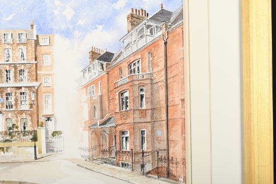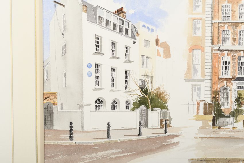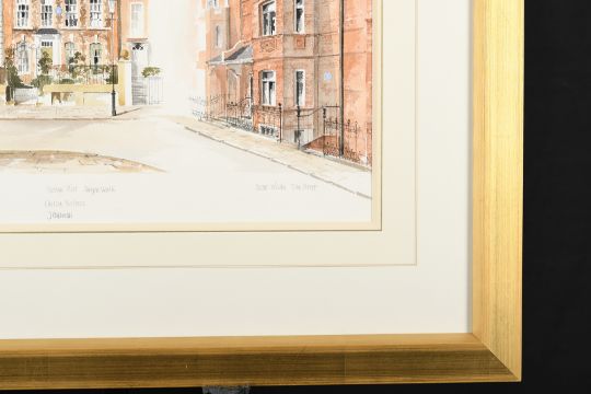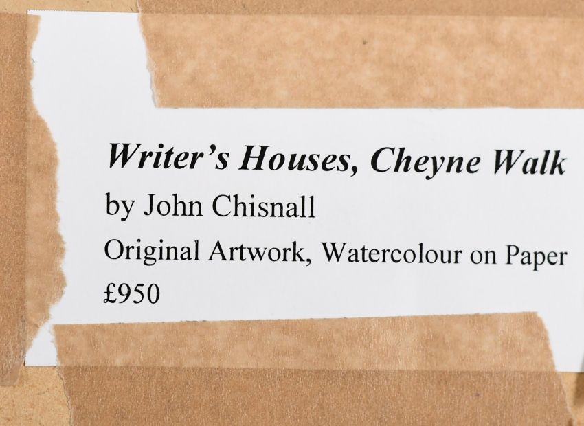 5559 - Framed Original watercolour by the English artist John Chisnall titled Writers House, Cheyne Walk with a previous gallery price of £950.