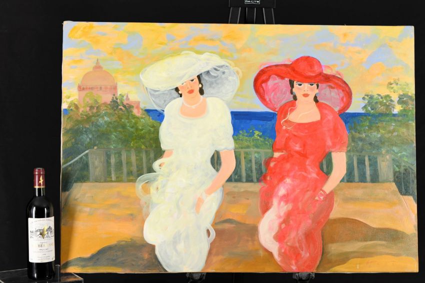 This original oil is titled "Donne Mediterranee" Canvas on stretchers ready to frame.