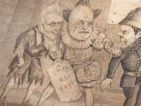 Title: Rare Antique Copper Engraved Printing Matrix Plate, The Xmas Clown Pantomime - Police Station N2