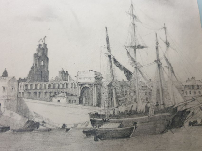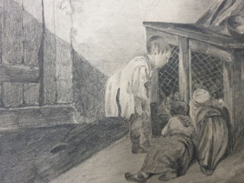 Two antique unframed author signed pencil drawings, size ca 27 x 22 cm.