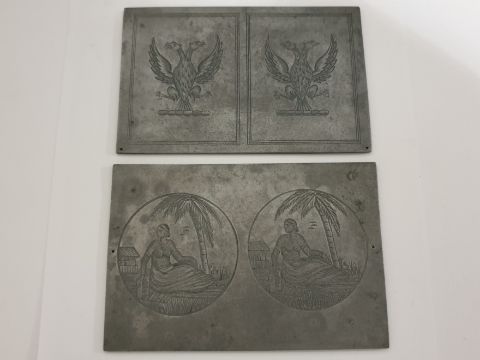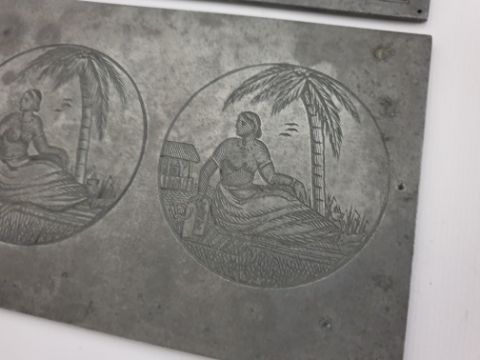 Title: Three Antique Zink Printing Matrix Blocks, Church Knight - Trade Mark- Coats of Arms