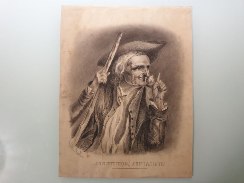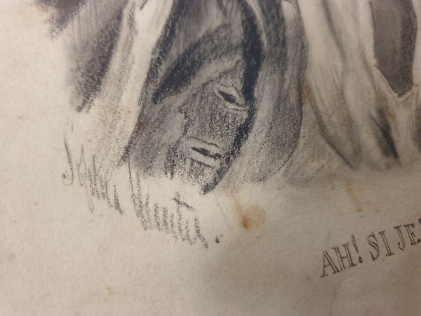 Antique pencil / charcoal pirate drawing, signed by the artist.