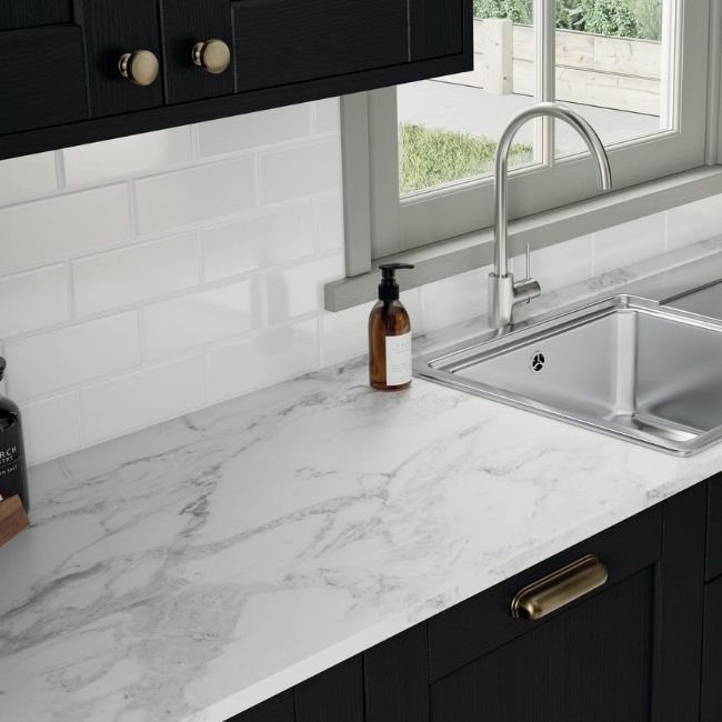Wren Calacatta Gloss Luxury Laminate worktop RRP £220 , 2-sides edged, 1.75m x 600mm x 38mm