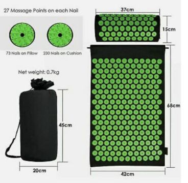 Our mat has 6120 acupressure points and the pillow has 1971 acupressure points to provide your full body massage not only for the back, neck, shoulder and waist but also the abdomen, chest, face, hips, legs, feet.