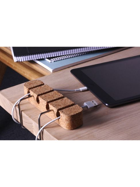 This soft cork cable guide should keep the desktop clutter-free without damaging power or USB cables, while also lending a warm dash of color and texture to the workspace.