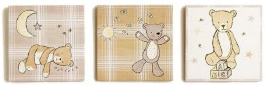 This set of three cute cuddly bears in neutral creamy tones will fit any nursery room providing it with a touch of warmth and cosiness.